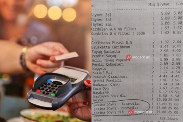 Bakıda restoranda kuryoz olay: Söyüşə görə müştəriyə cərimə yazıldı