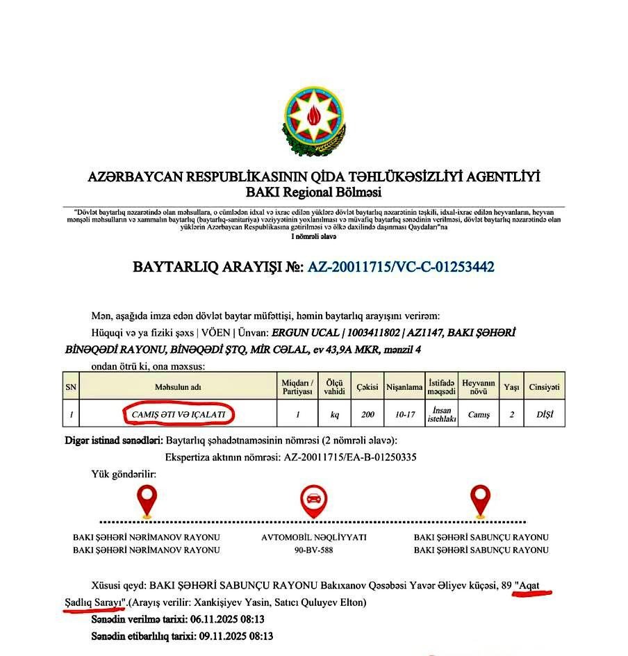 Bu barədə XALQ-a Azərbaycan Qida Təhlükəsizliyi Agentliyindən məlumat verilib.
