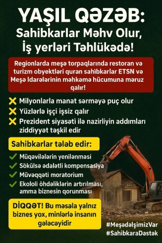 “YAŞIL QƏZƏB: MEŞƏDƏ SAHİBKARLARA HÜCUM – MİLYONLAR YERƏ SOVRULUR!”